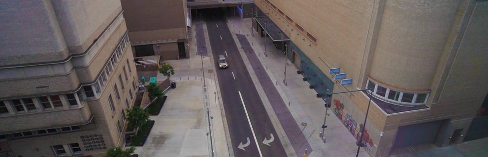 13th Street was originally a two-way street with tunnel access underneath the main parking garage connecting to the DPAC. During the conceptual design phase, the SEH team elected to change 13th Street to a one-way street. One reason for this was to control and optimize the loading operations. Another reason was to control how the DPAC parking garage emptied out following large events.